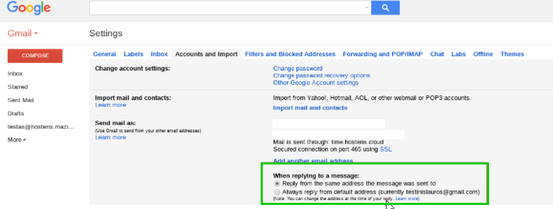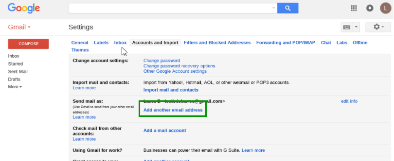 1.To add another email address, log in to your “Gmail” account and then choose “Settings” -> “Accounts and Import”: