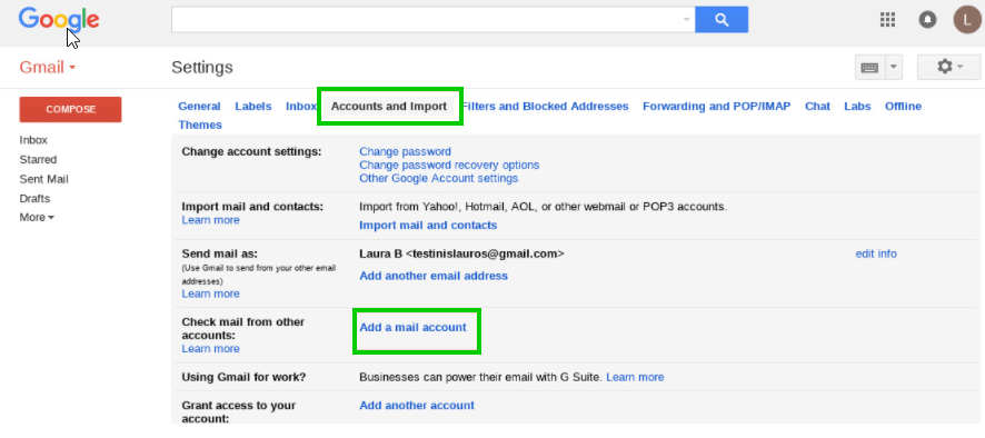 Step 2: Click on “Accounts and Imports“ and then select “Add a mail account“: