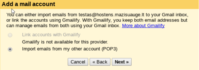 Step 4: Click on “Import emails from my other account (POP3)” and select “Next”: