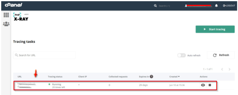 Click Refresh under Tracing Tasks on the tab where X-Ray is running. The task status has changed to “19 times left”.
