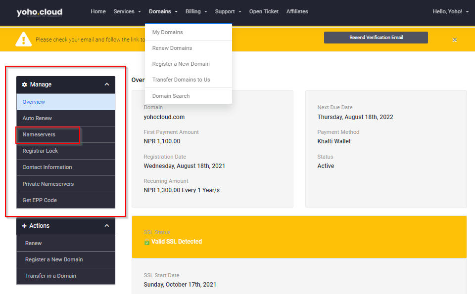 - Change the previous hosting nameservers with the Yoho.Cloud nameservers. Yoho.Cloud’s nameservers will be like this: ns1.yoho.cloud and ns2.yoho.cloud